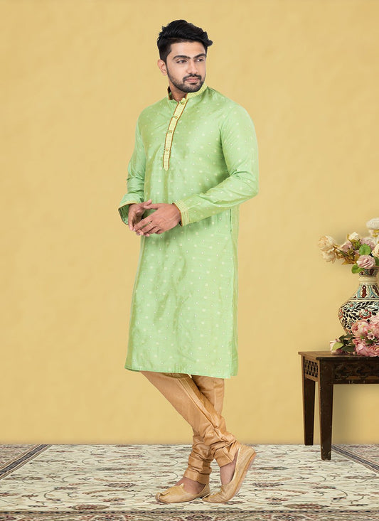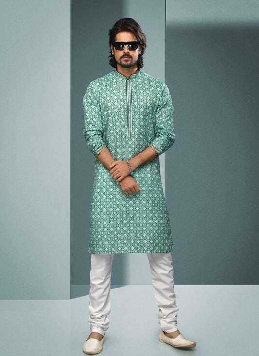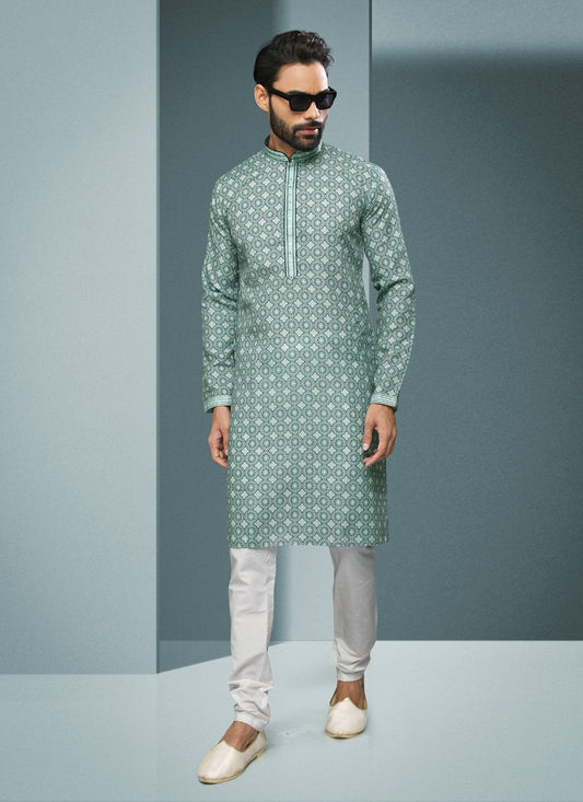 Kurta Pyjama Cotton Green Fancy Work