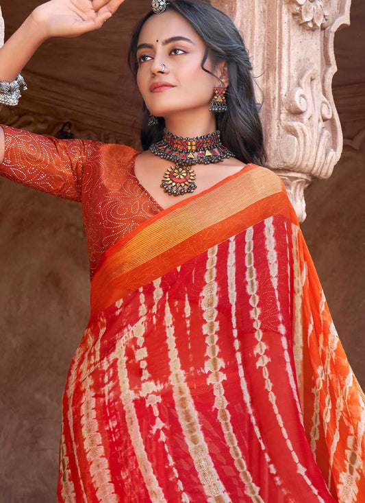 Contemporary Chiffon Morpeach Print Saree