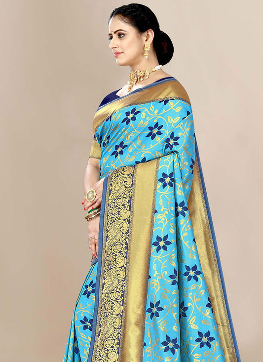 Trendy Saree Banarasi Silk Aqua Blue