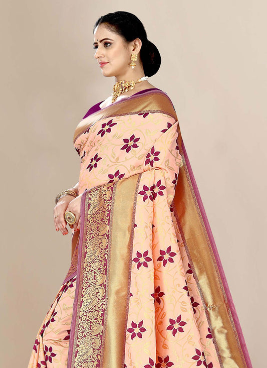 Contemporary Banarasi Silk Peach Jacquard Work
