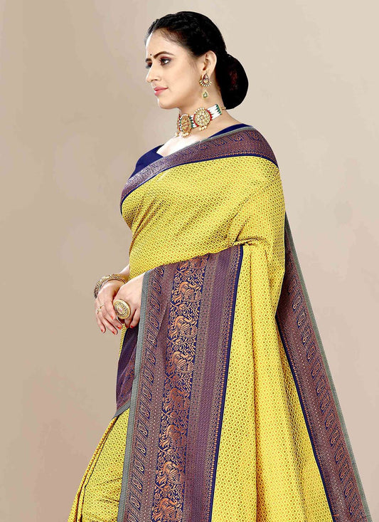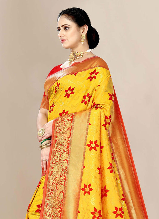 Traditional Saree Banarasi Silk Yellow Jacquard