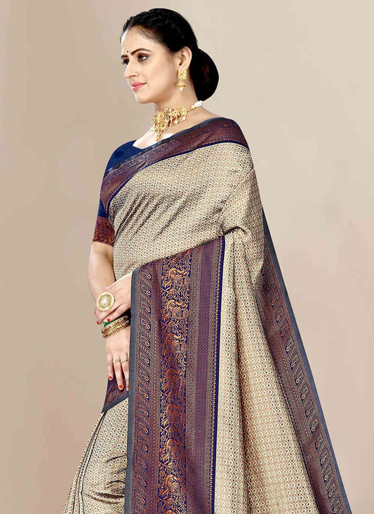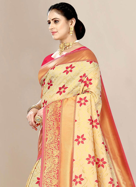 Contemporary Banarasi Silk Cream Jacquard Work
