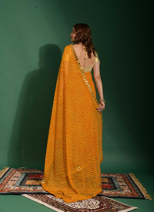 Trendy Saree Chiffon Yellow Mirror Saree