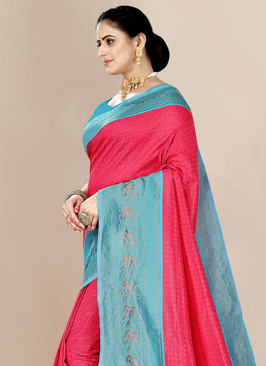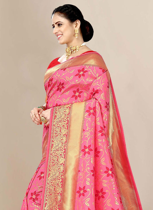 Designer Banarasi Silk Pink Jacquard Work