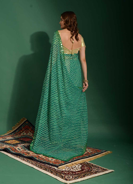 Classic Chiffon Green Mirror Saree