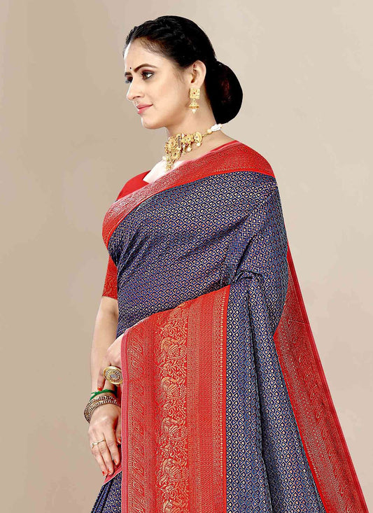 Trendy Saree Banarasi Silk Blue Jacquard