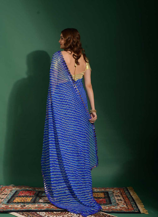 Contemporary Chiffon Blue Mirror Saree