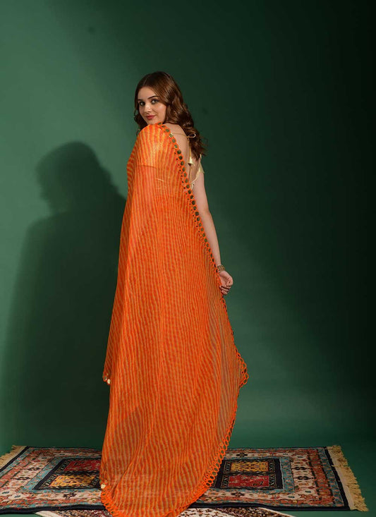 Classic Chiffon Orange Mirror Saree