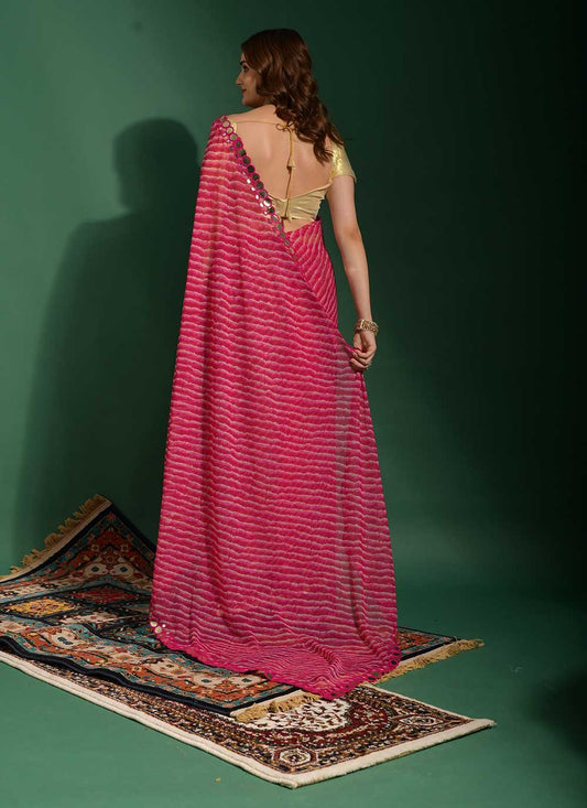 Classic Chiffon Pink Mirror Saree