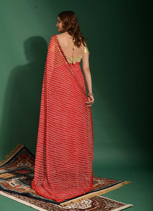 Casual Chiffon Red Mirror Saree