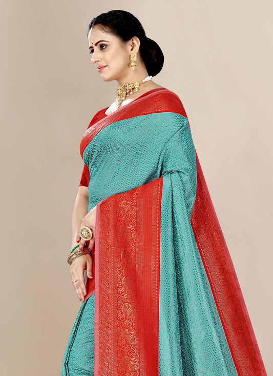 Contemporary Banarasi Silk Aqua Blue Jacquard