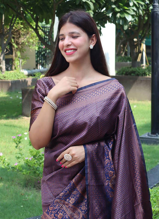 Traditional Saree Banarasi Silk Purple Weaving