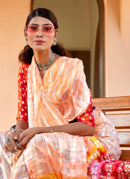 Contemporary Weight Less Orange Embroidered Saree
