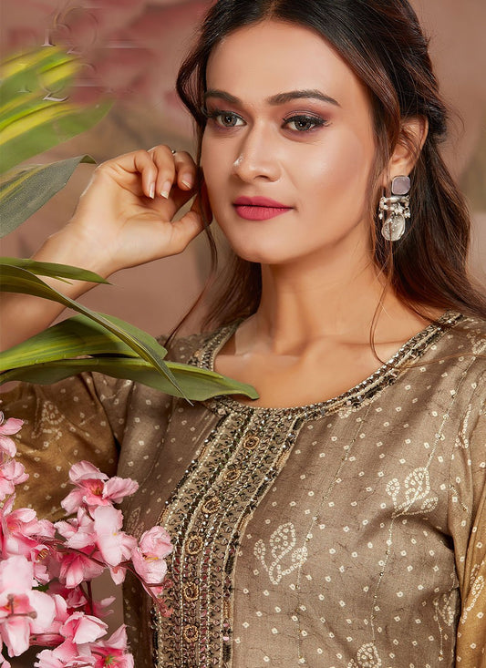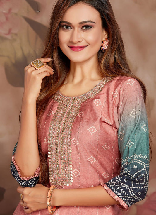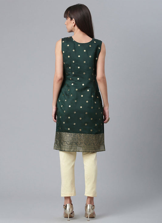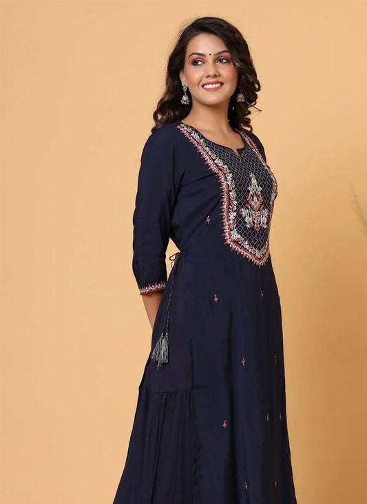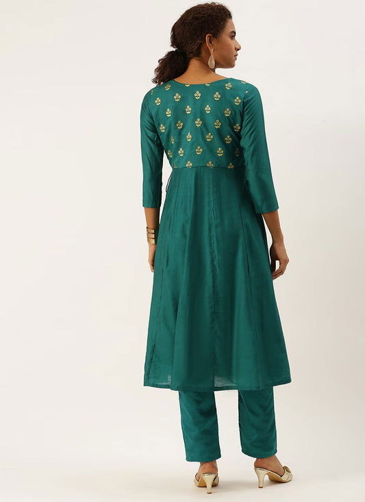 Designer Kurti Chanderi Viscose Teal Embroidered