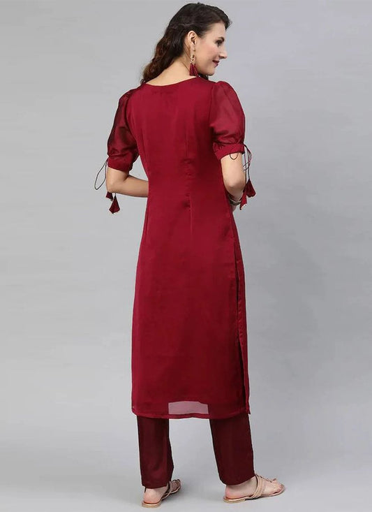 Casual Kurti Chanderi Viscose Maroon Embroidered