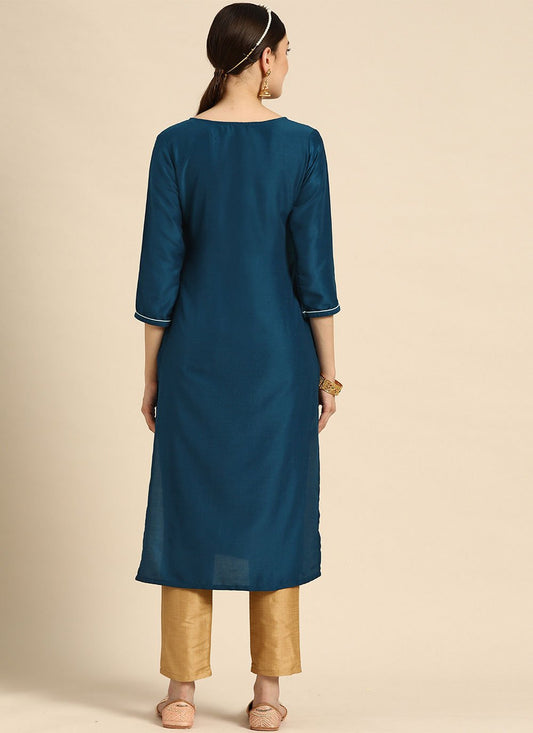 Casual Kurti Chinon Blue Embroidered Kurtis