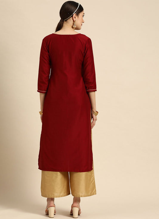Casual Kurti Chinon Maroon Embroidered Kurtis