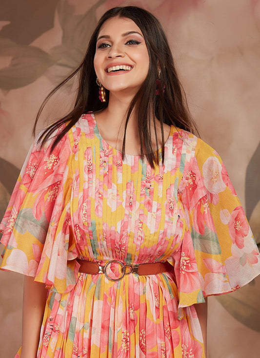 Designer Kurti Chinon Beige Embroidered Kurtis