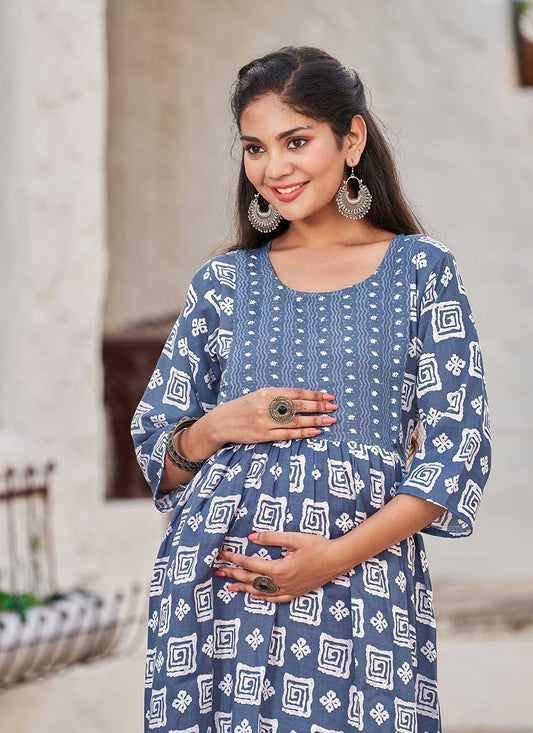 Designer Kurti Cotton Grey Embroidered Kurtis