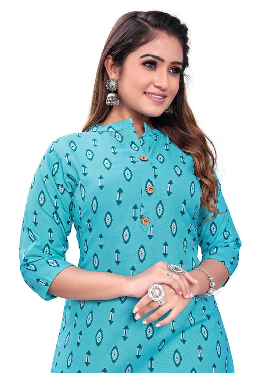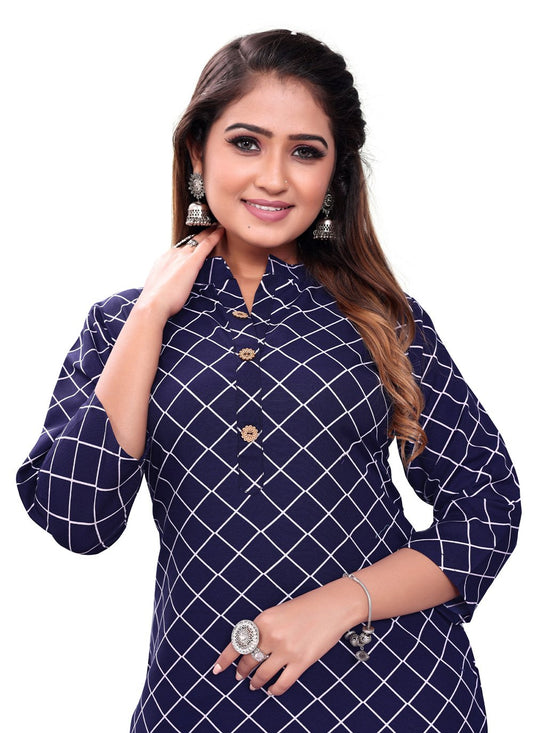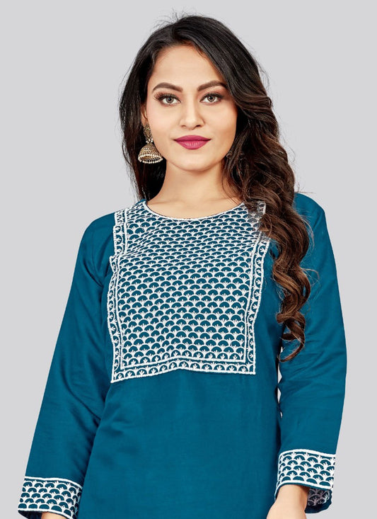 Casual Kurti Rayon Blue Embroidered Kurtis