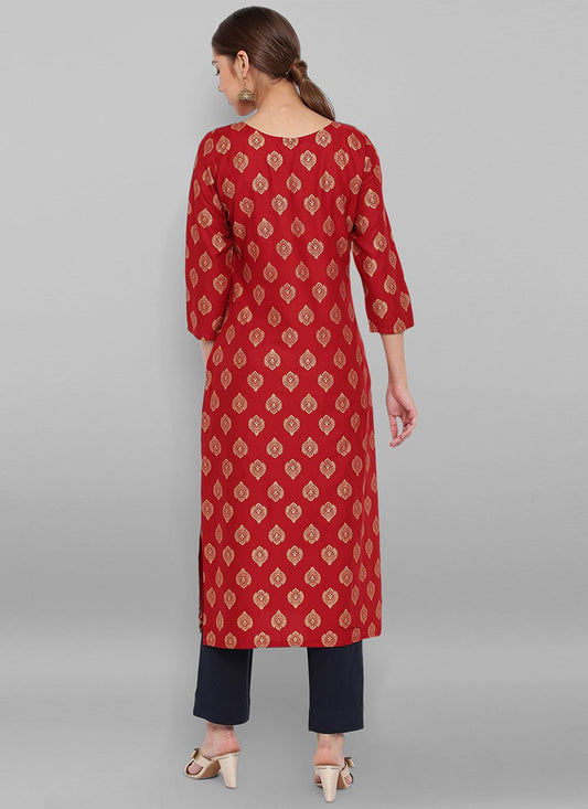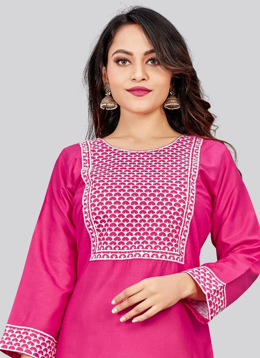 Casual Kurti Rayon Pink Embroidered Kurtis
