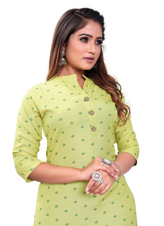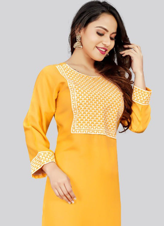 Designer Kurti Rayon Yellow Embroidered Kurtis