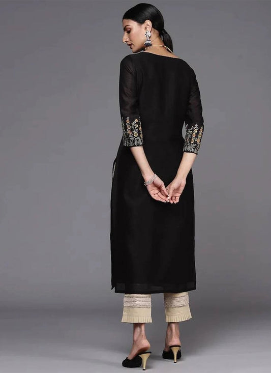 Designer Kurti Silk Black Embroidered Kurtis