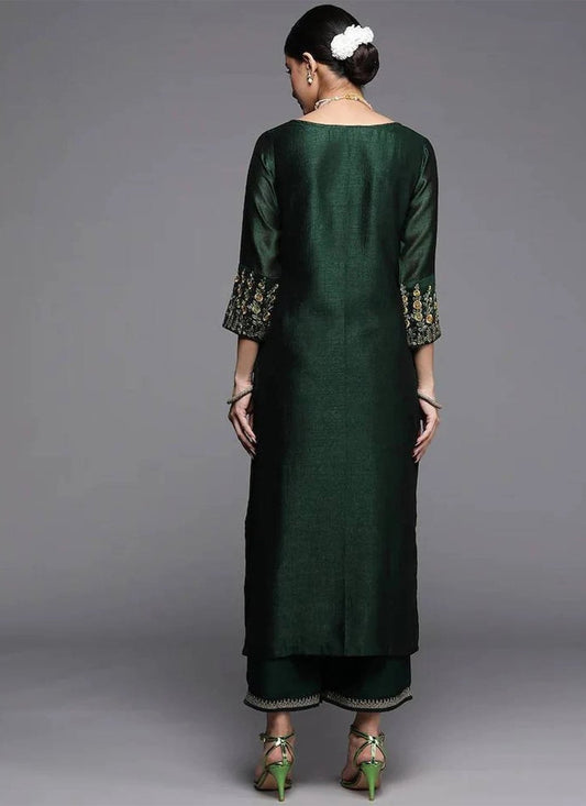 Party Wear Kurti Silk Green Embroidered