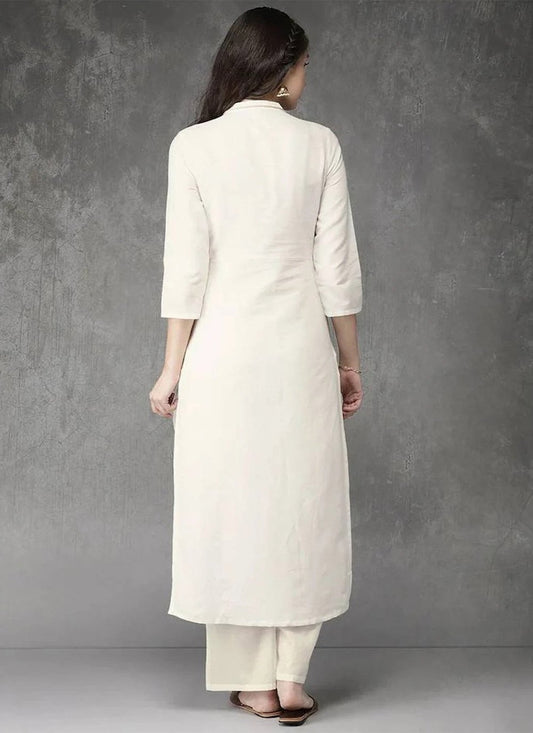Casual Kurti Rayon Off White Embroidered