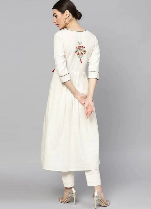 Designer Kurti Rayon Off White Embroidered
