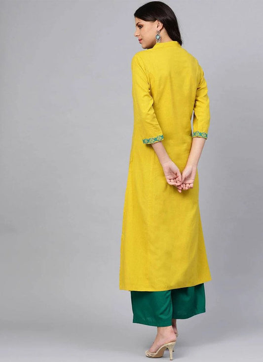 Casual Kurti Rayon Yellow Embroidered Kurtis