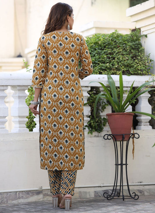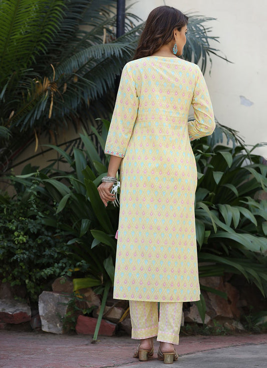 Designer Kurti Cotton Yellow Embroidered Kurtis