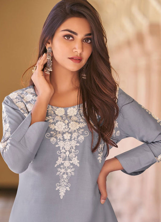 Designer Kurti Rayon Grey Embroidered Kurtis