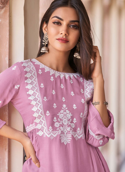 Casual Kurti Rayon Pink Embroidered Kurtis