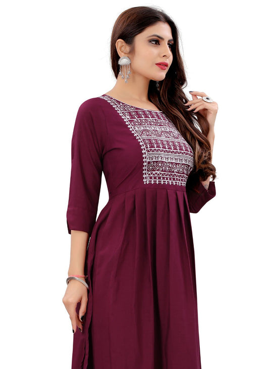Designer Kurti Rayon Burgundy Embroidered Kurtis