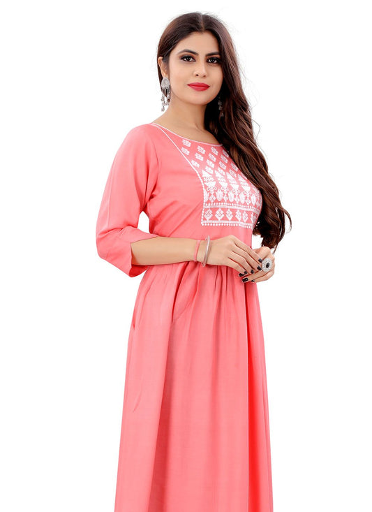 Designer Kurti Rayon Pink Embroidered Kurtis