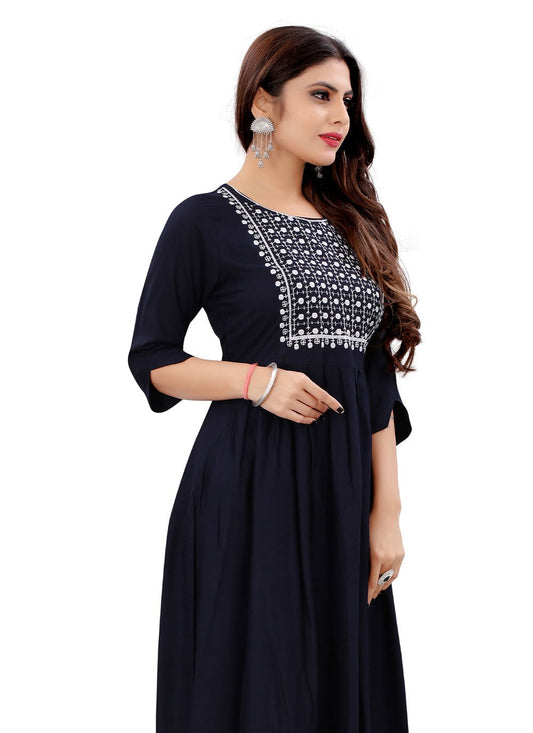 Party Wear Kurti Rayon Blue Embroidered