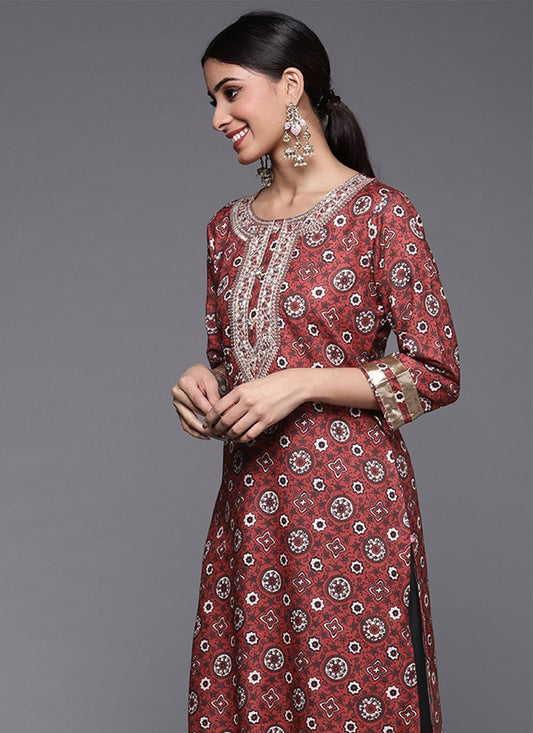 Designer Kurti Silk Blend Maroon Embroidered