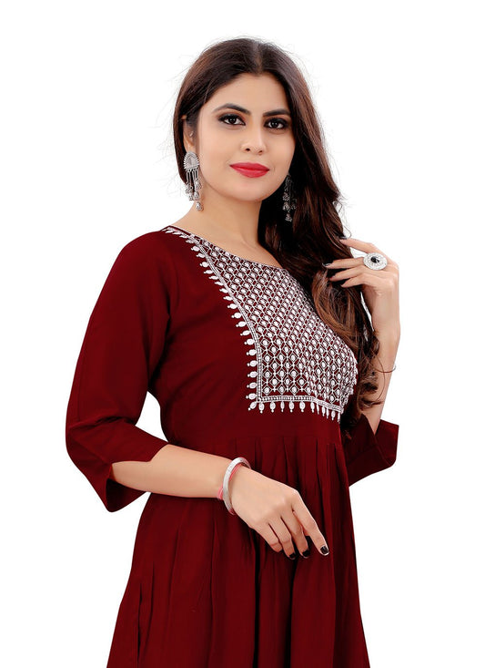 Party Wear Kurti Rayon Maroon Embroidered