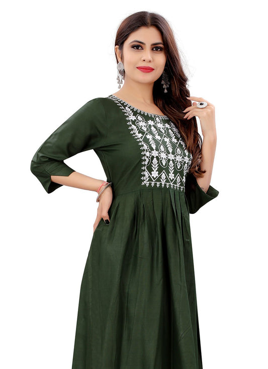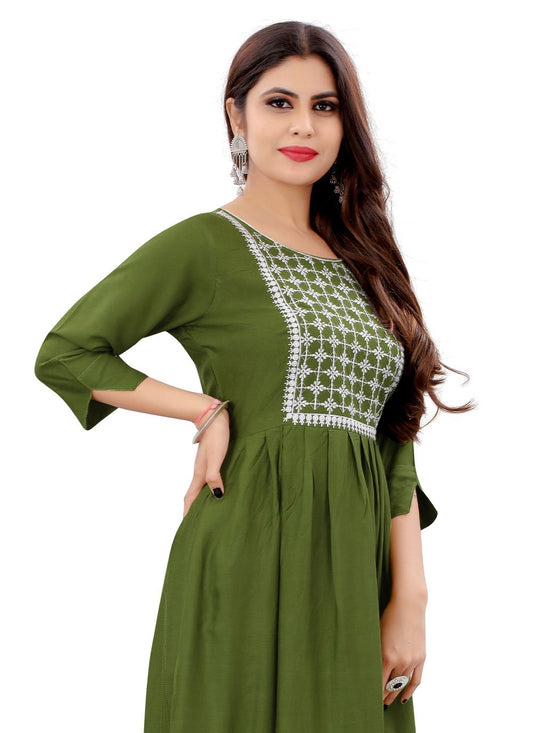 Casual Kurti Rayon Green Embroidered Kurtis
