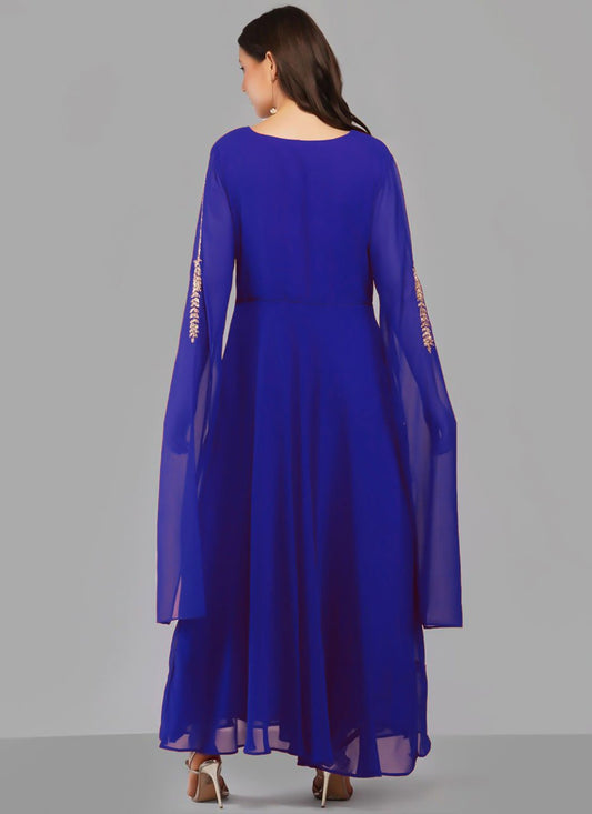 Designer Kurti Velvet Blue Embroidered Kurtis