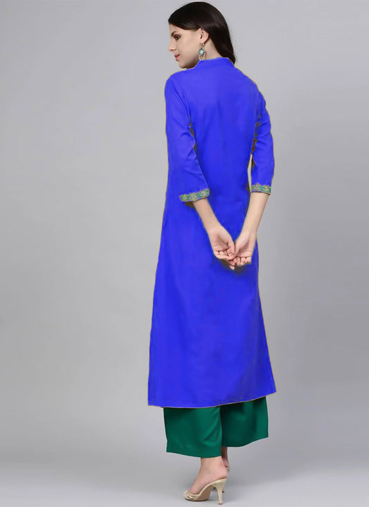 Designer Kurti Cotton Blue Embroidered Kurtis