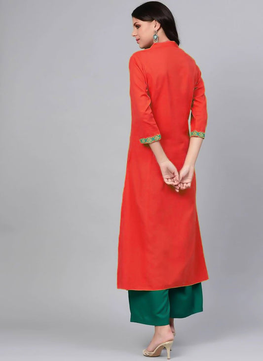 Casual Kurti Rayon Peach Embroidered Kurtis