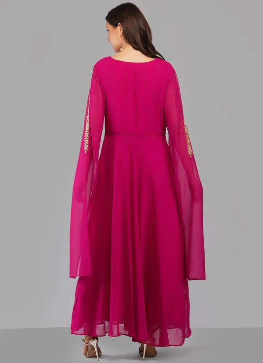 Casual Kurti Georgette Pink Embroidered Kurtis