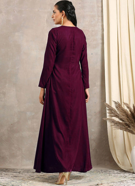 Casual Kurti Velvet Purple Embroidered Kurtis