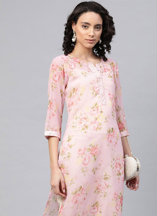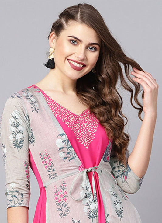 Casual Kurti Rayon Pink Embroidered Kurtis