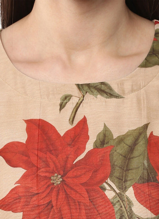 Designer Kurti Rayon Peach Embroidered Kurtis