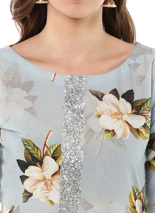 Designer Kurti Rayon Grey Embroidered Kurtis