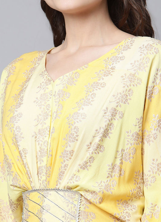 Casual Kurti Rayon Yellow Embroidered Kurtis