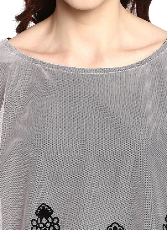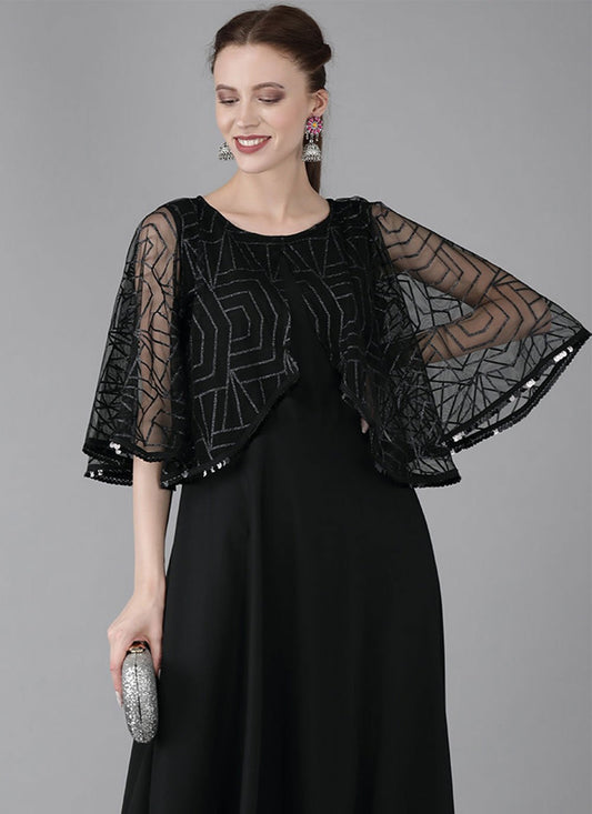 Party Wear Kurti Net Black Print